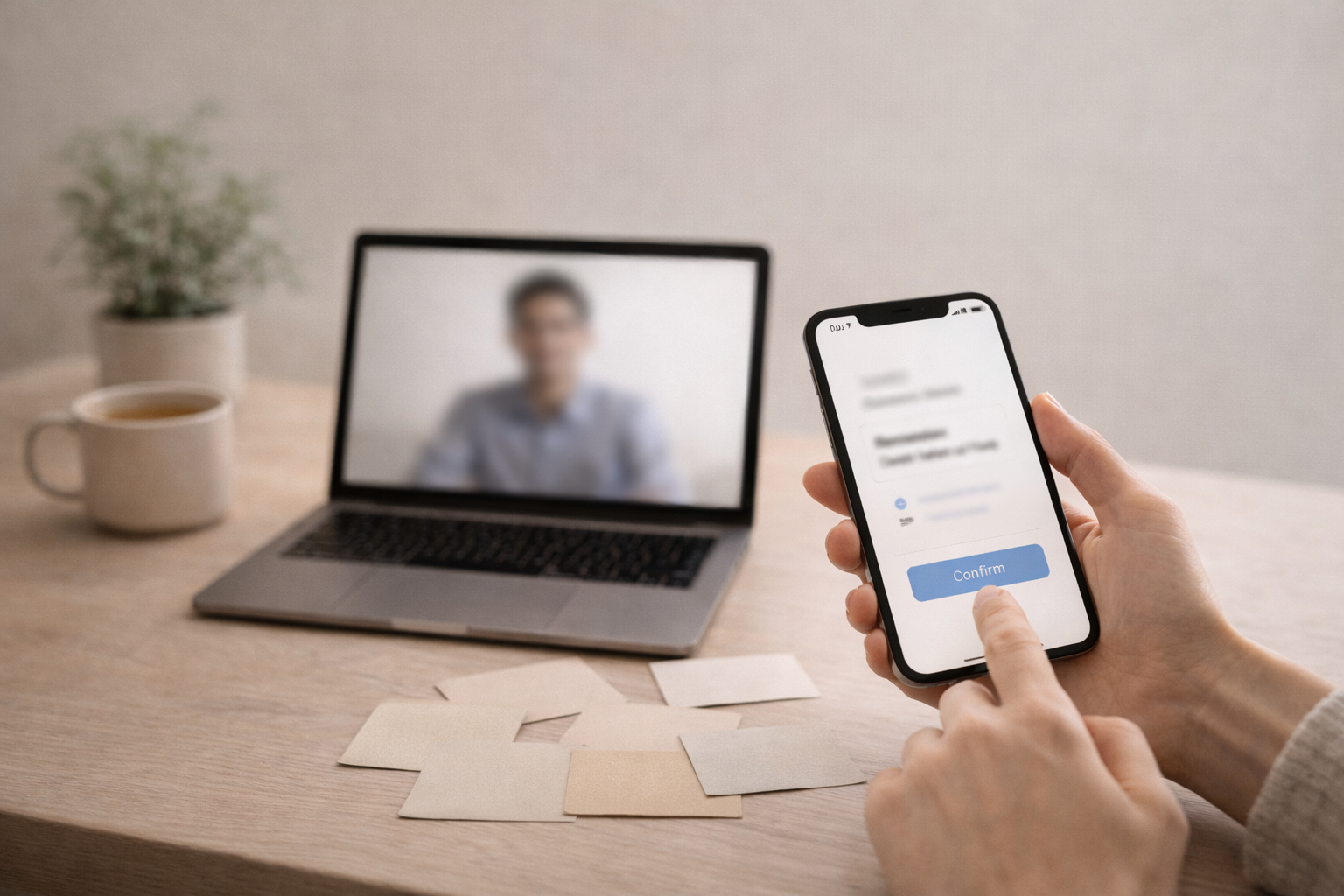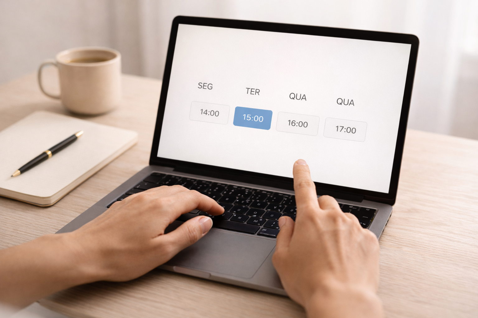 Receberá um e-mail com um link seguro para participar na sessão no dia e hora marcado.